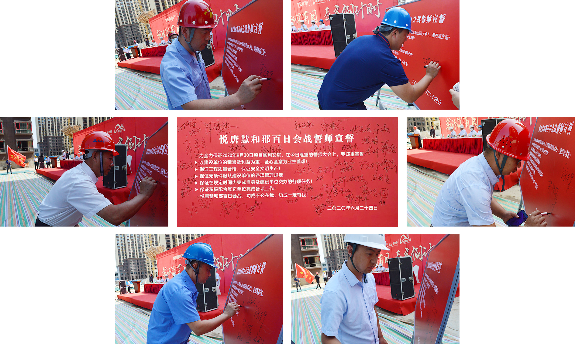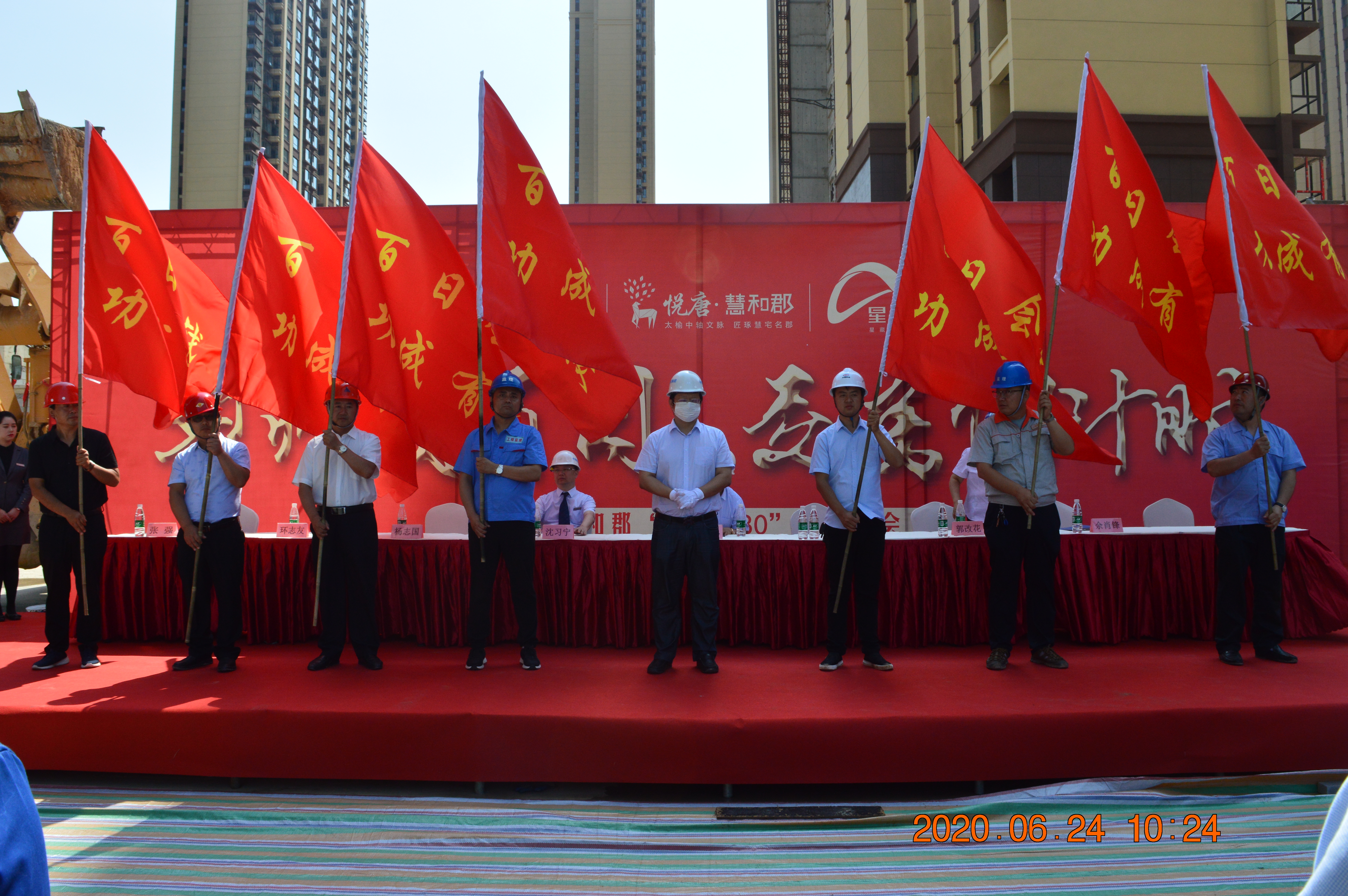 誓師戰(zhàn)百日,交房倒計(jì)時(shí)!為全力保證項(xiàng)目交房任務(wù)圓滿完成,嚴(yán)格兌現(xiàn)向廣大業(yè)主的承諾,2020年6月24日上午,山西悅唐房地產(chǎn)開發(fā)有限公司組織進(jìn)行“施工現(xiàn)場觀摩檢查暨工程百日會(huì)戰(zhàn)誓師大會(huì)”。中維控股集團(tuán)董事長郭秀忠先生、總裁郭雅磊先生,悅唐地產(chǎn)執(zhí)行總經(jīng)理郭改花女士、總工程師張強(qiáng)先生,以及項(xiàng)目各總包、監(jiān)理、分包單位負(fù)責(zé)人等主要領(lǐng)導(dǎo),中維控股集團(tuán)、各參建單位員工代表參與本次活動(dòng)。