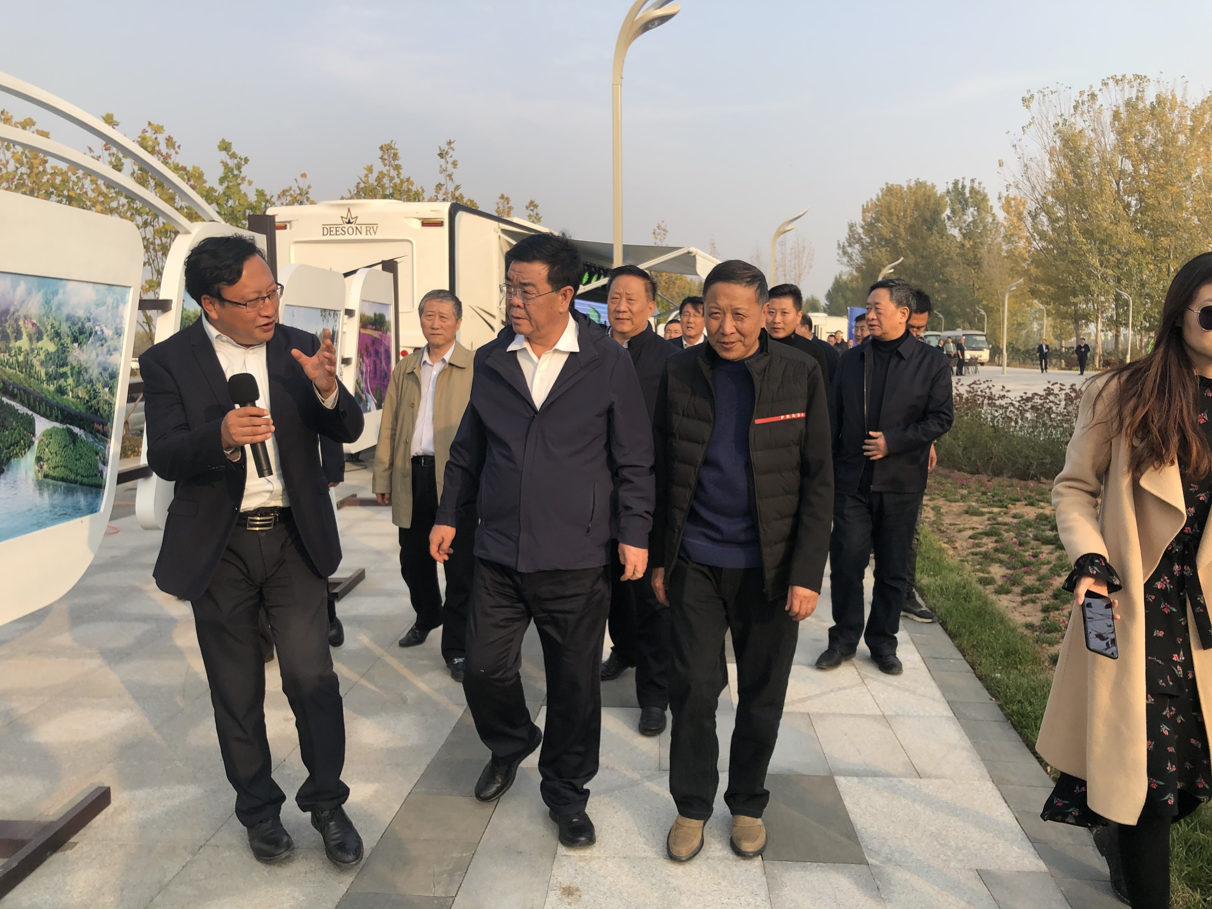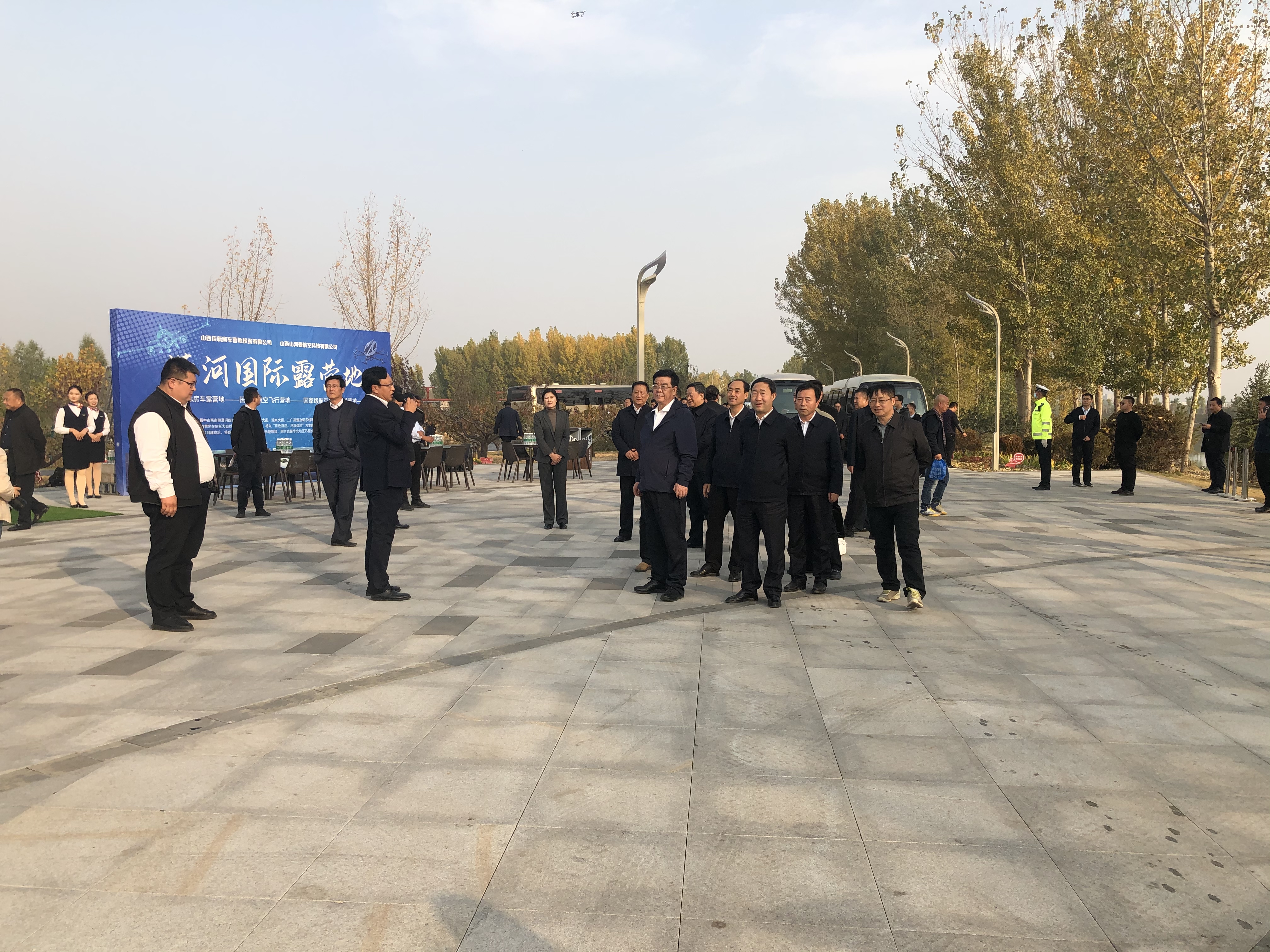 2020年10月26日下午,晉中市市委書記趙建平及市、區(qū)、縣等領(lǐng)導(dǎo)一行100余人蒞臨“瀟河國際露營地”展區(qū)進(jìn)行實地考察調(diào)研。山西中維控股集團有限責(zé)任公司董事長郭秀忠、山西佳新房車營地投資有限公司董事長劉金柱等相關(guān)人員全程陪同,并針對項目概況及未來發(fā)展前景及意義進(jìn)行了簡單的解說和匯報。