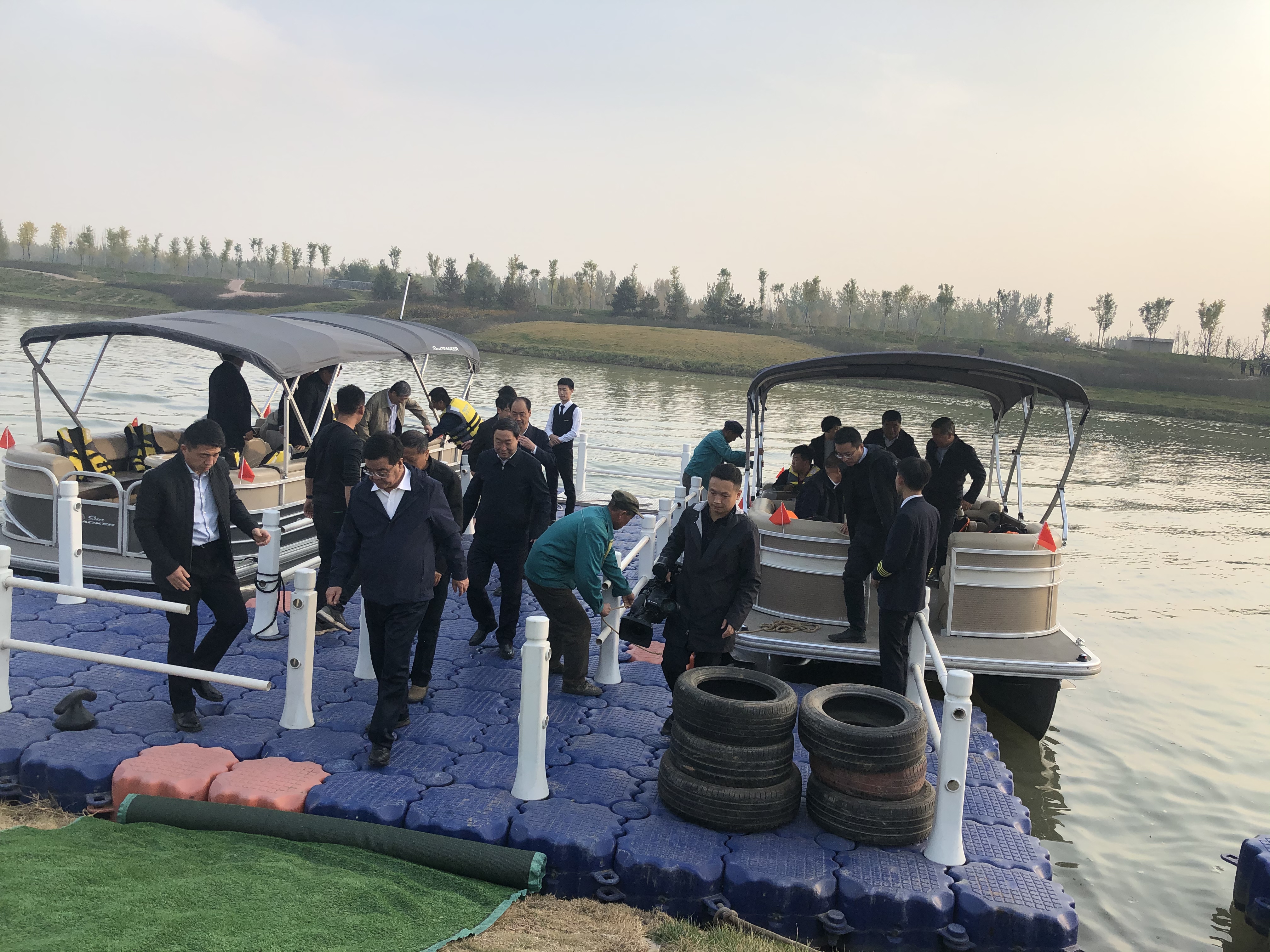 晉中市市委書記趙建平及市、區(qū)、縣等領(lǐng)導(dǎo),先后考察參觀了“瀟河國際露營地”展區(qū)的各個展點。首先,觀看了山河景公司載人無人機表演,并詳細(xì)詢問了解了載人無人機的各項參數(shù)及技術(shù)應(yīng)用范圍及情況。隨后,考察組來到游艇碼頭親自體驗了游艇項目,在瀟河碧波上,兩岸風(fēng)光盡收眼底。最后,考察組參觀了不同型號成品房車,并就房車區(qū)域的未來規(guī)劃、準(zhǔn)備投入量及發(fā)展前景等問題進(jìn)行了詳細(xì)了解。
