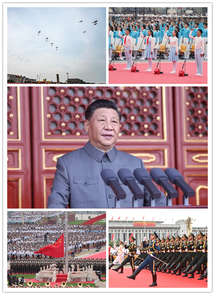 8時整,大會開始。戰(zhàn)鷹飛過天安門廣場,最美的祝福送給黨!國旗護衛(wèi)隊器宇軒昂、步伐堅定,從人民英雄紀念碑到國旗桿220米的距離,由齊步、正步、齊步各100步完成;這條路不長、剛好走了100步,這條路很長、足足走了100年!會場內(nèi)外萬千中華兒女注目著五星紅旗冉冉升起,莊嚴的外表難掩內(nèi)心無比的激動。緊接著,共青團員和少先隊員代表們集體致獻詞,滿懷深情表達了對黨百年華誕的真摯祝福。接下來,大會進行最為重要的議程,習近平總書記發(fā)表重要講話!當總書記講到“中國人民也絕不允許任何外來勢力欺負、壓迫、奴役我們,誰妄想這樣干必將在14億多中國人民用血肉筑成的鋼鐵長城面前碰的頭破血流”時,集團全體黨員心潮澎湃,會議室內(nèi)響起熱烈掌聲!