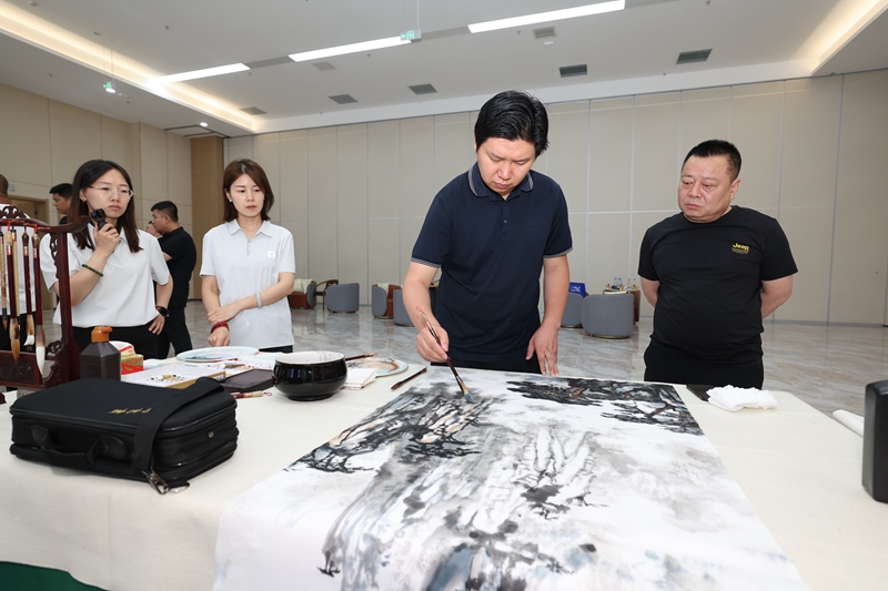 湖南省衡陽市書畫院資深書畫家郭健大師、山西大學(xué)美術(shù)學(xué)院常瀟教授等書畫名家現(xiàn)場(chǎng)潑墨,以精湛技藝點(diǎn)亮藝術(shù)空間。