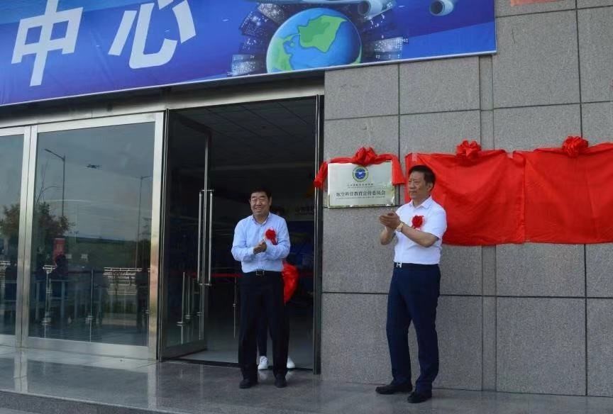 山西省航空運動協(xié)會主席郭福林、中維集團(tuán)董事長郭秀忠為“山西省航空運動協(xié)會航空科普教育宣傳委員會”揭牌